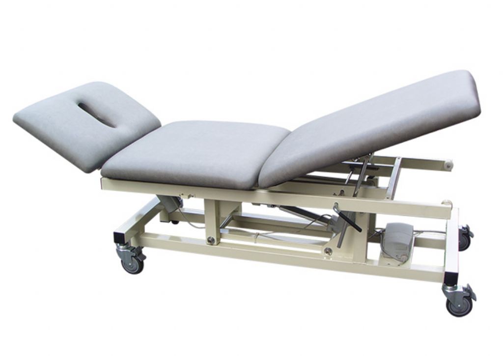 規格: - 床面尺寸:195x69cm。 - 床面高度:52-100cm。 - 頭部墊長度:41cm。 - 頭墊角度:-45°/45°(無段式調整)。 - 背墊長度:65cm。 - 腳墊長度:84cm。 - 腳墊角度:0°/50°(無段式調整)。 - 附4〞病床式剎車大輪。 - 附4個定位調整座。 - 高度升降機製:電動馬達+頭部氣壓棒。 - 所有尺寸±5%。